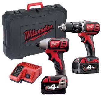 סט מברגות 18V מברגת אימפקט+מקדחה רוטטת כולל 2 סוללות 4A Milwaukee