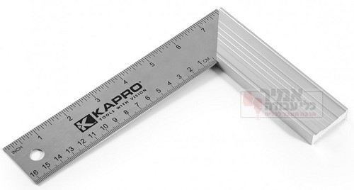 זווית נגרים מקצועית מבית KAPRO. כלי איכותי במיוחד בעל סרגל אלומיניום מפלדת אל חלד המגיעה במגוון אורכים בעלת חיתוכים וחיבורי °90 מדוייקים!
