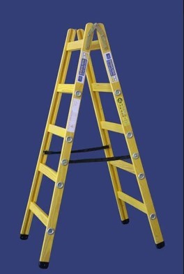 סולם עץ כפול איכותי בעל מוטות פלדה מגולוונות מתחת לכל שלב.