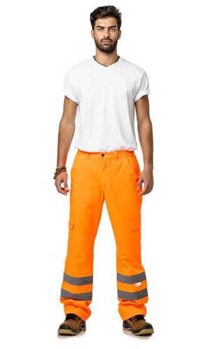 מכנסיים בטיחותיים! בעלי נראות גבוהה, בצבע כתום זוהר עם 4 פסים זוהרים בחלקו התחתון (2 בכל צד). בעל כיסים, כפתור קדמי ולולאות חגורה להתאמה אישית. המכנס נוח ללבישה ועמיד לארוך זמן. מתאים לענפי עבודה מגוונים.