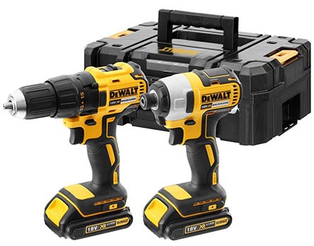 סט 2 מברגות נטענות 18V מבית DeWalt, הסט כולל 2 סוללות ליתיום 2Ah מסדרת XR ומטען, מברגת אימפקט קטנה ועוצמתית, מנוע BRUSHLESS, מקדחה רוטטת, גיר בעל 2 מהירויות, 0-500/1750 סל"ד, מומנט פיתול 65Nm