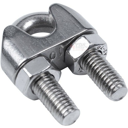 מהדק כבל נירוסטה 316 לכבלי פלדה במידה 8 מ"מ הברגה M6 מבית נעה פרזול. מהדק כבל עוצמתי עשוי נירוסטה 316, בעל 2 הברגות ו2 אומים להידוק הכבל.