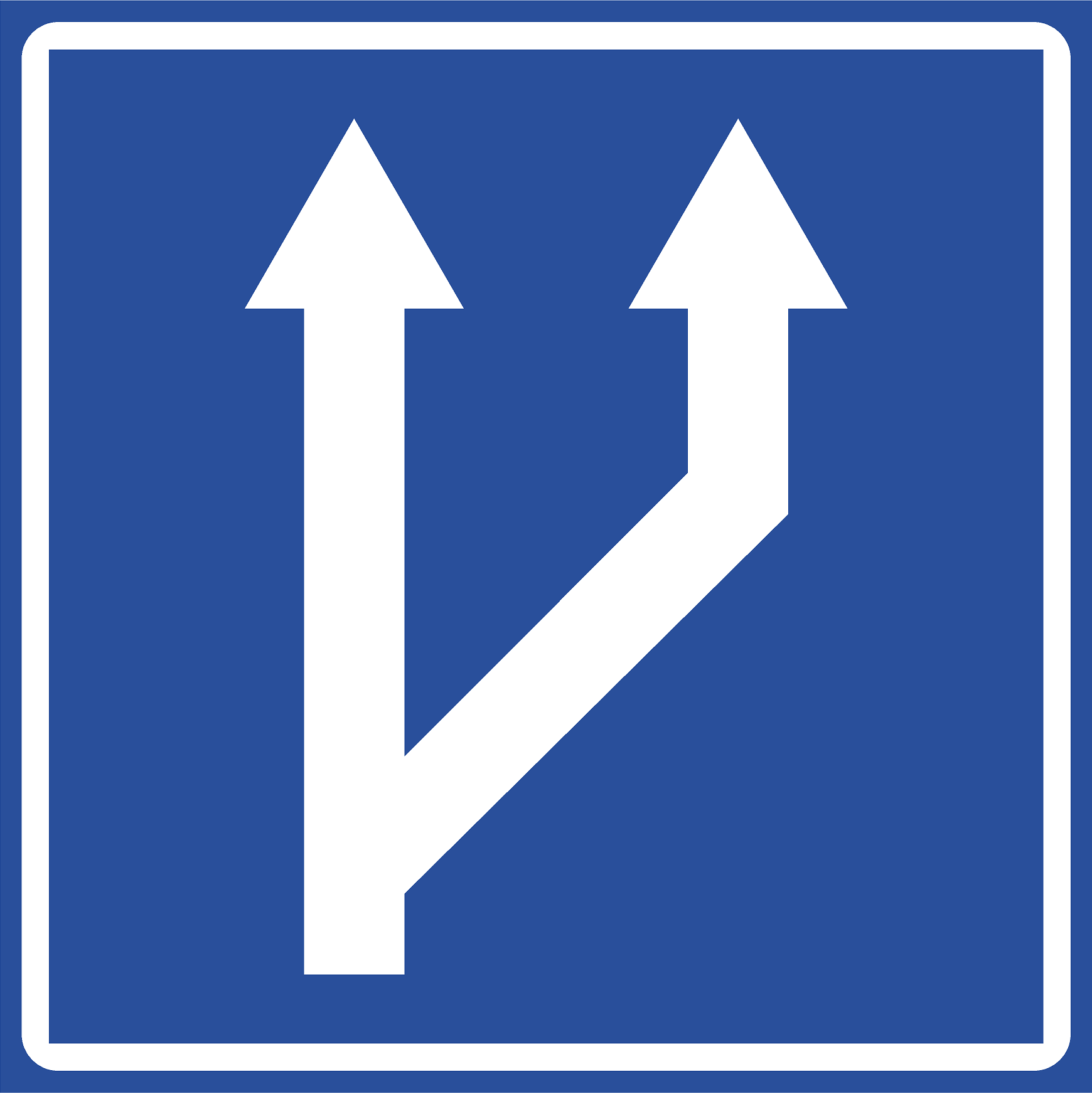 תמרור 619 שינוי במספר הנתיבים מספר הנתיבים בכביש הולך וגדל, מימין Amir tools