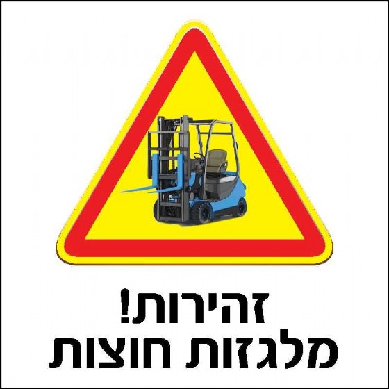 שלט PVC איכותי בעובי 2 מ"מ זהירות מלגזות חוצות במידה 30 × 30 ס"מ. ניתן להזמין את כל סוגי השלטים בייצור אישי כולל מידות וסוגי חומרים.