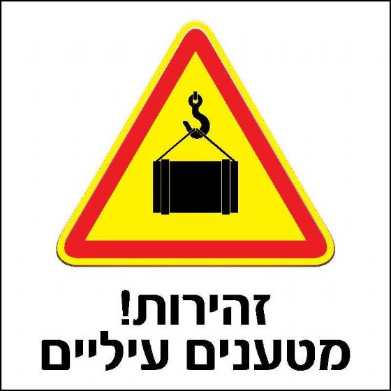 שלט PVC איכותי בעובי 2 מ"מ זהירות מטענים עיליים במידה 30 × 30 ס"מ. ניתן להזמין את כל סוגי השלטים בייצור אישי כולל מידות וסוגי חומרים.