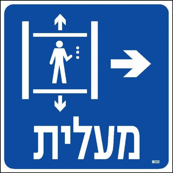 שלט PVC איכותי בעובי 2 מ"מ מעלית ימינה במידה 20 × 20 ס"מ. ניתן להזמין את כל סוגי השלטים בייצור אישי כולל מידות וסוגי חומרים.