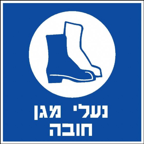 שלט PVC איכותי בעובי 2 מ"מ נעלי מגן חובה במידה 30 × 30 ס"מ. ניתן להזמין את כל סוגי השלטים בייצור אישי כולל מידות וסוגי חומרים.