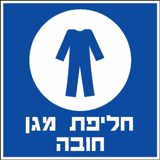 שלט PVC איכותי בעובי 2 מ"מ חליפת מגן חובה במידה 30 × 30 ס"מ. ניתן להזמין את כל סוגי השלטים בייצור אישי כולל מידות וסוגי חומרים.