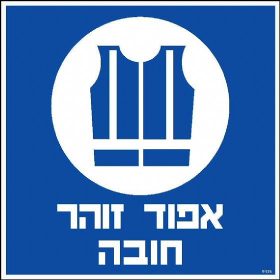 שלט PVC איכותי בעובי 2 מ"מ אפוד זוהר חובה במידה 30 × 30 ס"מ. ניתן להזמין את כל סוגי השלטים בייצור אישי כולל מידות וסוגי חומרים.