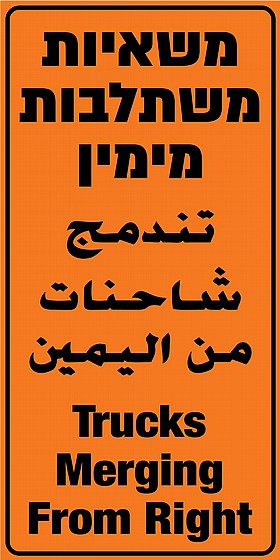 שלט PVC איכותי בעובי 2 מ"מ משאיות משתלבות מימין – 3 שפות 80X40 במידה ס"מ. ניתן להזמין את כל סוגי השלטים בייצור אישי כולל מידות וסוגי חומרים.