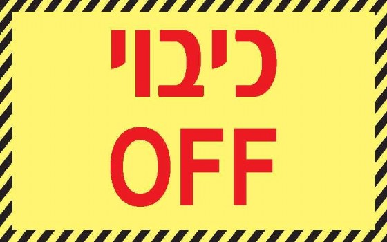 שלט PVC איכותי בעובי 2 מ"מ פולט אור כיבוי OFF במידה 8 × 5 ס"מ. ניתן להזמין את כל סוגי השלטים בייצור אישי כולל מידות וסוגי חומרים.