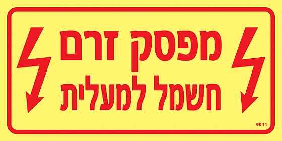 שלט PVC איכותי בעובי 2 מ"מ פולט אור מפסק זרם חשמל למעלית במידה 20 × 10 ס"מ. ניתן להזמין את כל סוגי השלטים בייצור אישי כולל מידות וסוגי חומרים.