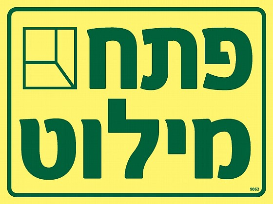 שלט PVC איכותי בעובי 2 מ"מ פולט אור פתח מילוט במידה 20 × 15 ס"מ. ניתן להזמין את כל סוגי השלטים בייצור אישי כולל מידות וסוגי חומרים.