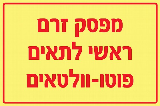 שלט PVC איכותי בעובי 2 מ"מ פולט אור מפסק זרם ראשי לתאים פוטו וולטאים במידה 60 × 40 ס"מ. ניתן להזמין את כל סוגי השלטים בייצור אישי כולל מידות וסוגי חומרים.
