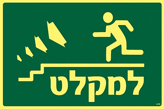 שלט PVC איכותי בעובי 2 מ"מ פולט אור למקלט שמאלה למטה במידה 30 × 20 ס"מ. ניתן להזמין את כל סוגי השלטים בייצור אישי כולל מידות וסוגי חומרים.