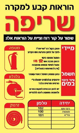 שלט PVC איכותי בעובי 2 מ"מ פולט אור הוראות קבע למקרה שריפה במידה 30 × 50 ס"מ. ניתן להזמין את כל סוגי השלטים בייצור אישי כולל מידות וסוגי חומרים.