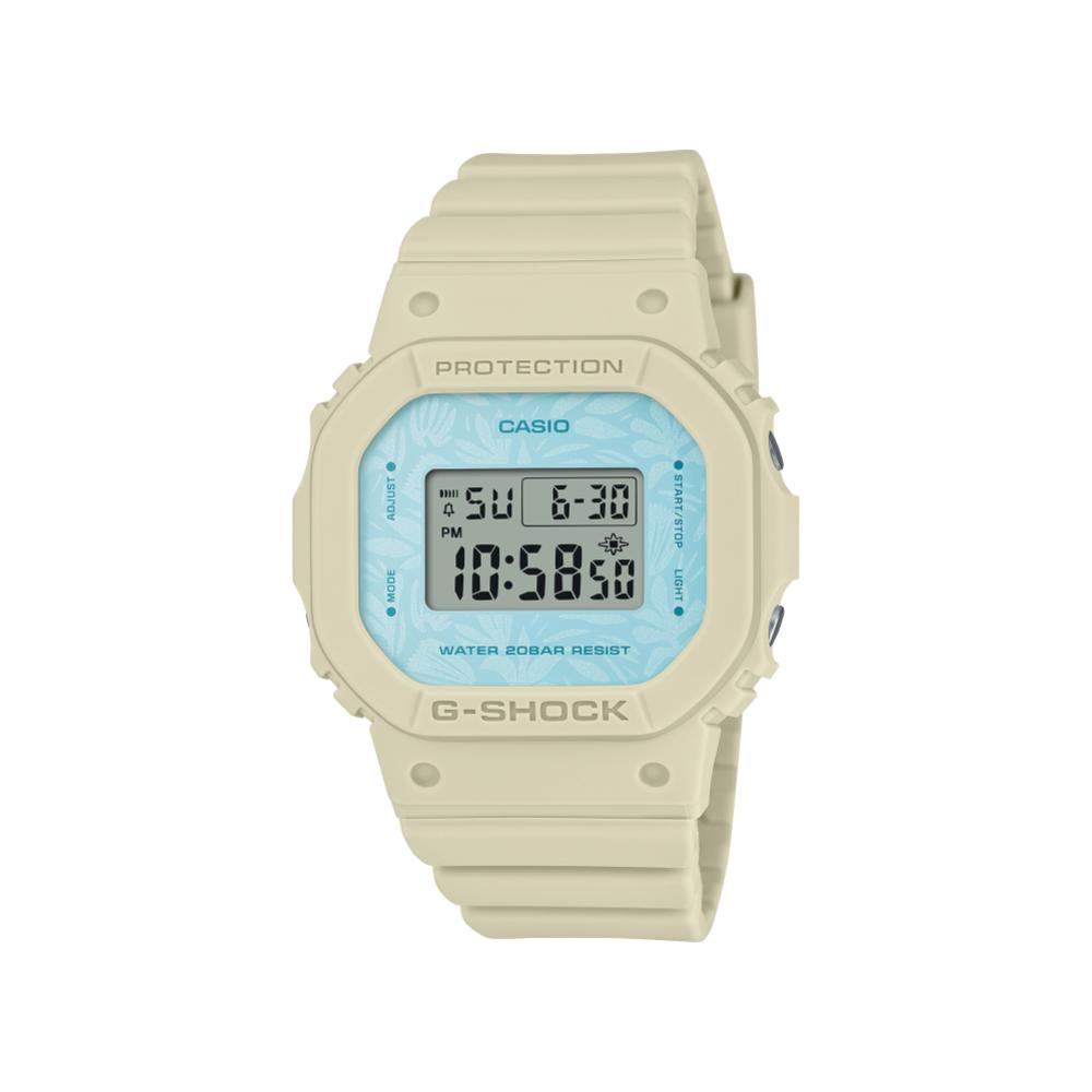GMD-S5600NC-9DR שעון יד ג'י שוק דיגיטלי בעיצוב יוניסקס הממשיך את המסורת העיצובית של  הדגם האלמותי DW5600 בגרסה מעודנת ואלגנטית אשר מעוצבת כהומאג׳ לטבע. פני השעון מגיעות עם מסך LCD בהיר המוקף מסגרת בצבע תכלת שמיים עם דוגמת עלים עדינה. מסגרת השעון ורצועת הסיליקון מגיעות בצבע קרם  בהיר ופסטלי אשר יחד משרים שקט ושלווה בשילוב עם צורה גאומטרית ספורט-אלגנטית שמתאימה כמעט לכל מאורע או אירוע. אך עיצוב אינו הכל.