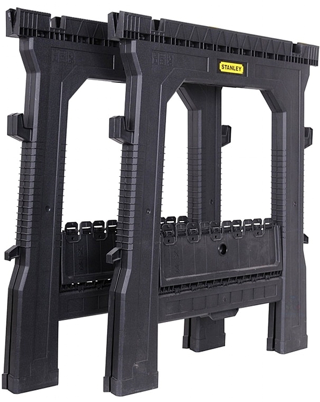 זוג סוס עבודה בדגם משופר ואיכותי במיוחד מבית סטנלי. מיועד להנחת דברים כבדים לביצוע עבודות, כמו שולחנות, משטחי עבודה, מזגנים, קרשים, חלקי מתכת ועוד. כולל מרקם מונע החלקה בחלקו העליון להנחה בטוחה.