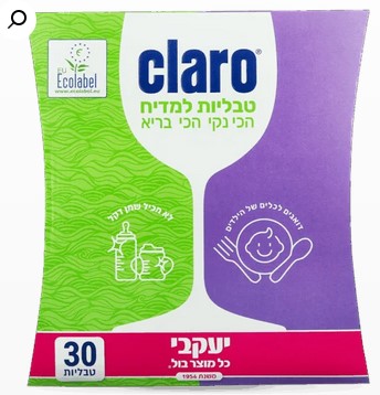 קלרו- טבליות למדיח – לכלים של הילדים 30 יח' קלארו