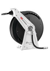 גלגלת אלומיניום מקצועית מיועדת להעברת גריז בעלת זרוע אחת עם תוף פלסטיק מחוזק, מוחזרת קפיץ.