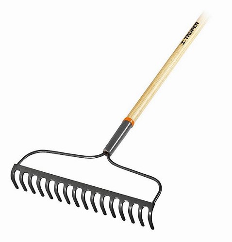 מגרפה איכותית מחוזקת 16 שיניים עם ידית עץ באורך 152 ס"מ מבית המותג TRUPER.