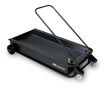 עגלת שמן שרוף עם מיכל בנפח 95 ליטר לשמן הנכנס מתחת למכונית וקולט בגרוויטציה את השמן השרוף.