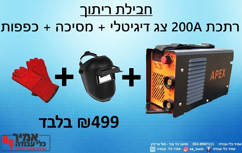חבילת ריתוך מקצועית הכוללת רתכת 200A מסיכה וכפפות APEX