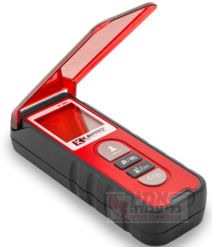 מד טווח לייזר מקצועי תוצרת KAPRO. מכשיר מצוין עם כיסוי מתקפל מודד שטח ונפח בעל מעטפת עמידה לזעזועים!