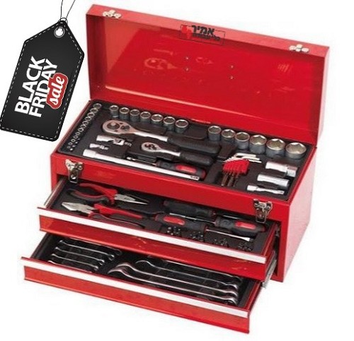 ארגז כלים מקצועי עשוי מתכת הכולל 107 כלים וחלקים באיכות גבוהה ובמגוון שונה ורחב של גדלים ומידות. הארגז נפתח ל-2 מגירות וכולל פתח עליון לגישה מהירה ונוחה. מתאים ומומלץ במיוחד גם לשימוש ביתי וגם למקצוען! ארגז מצוין ועמיד לאורך זמן.