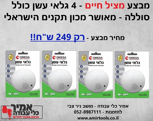 מבצע 4 יח' גלאי עשן מציל חיים מאושר מכון התקנים הישראלי Omega