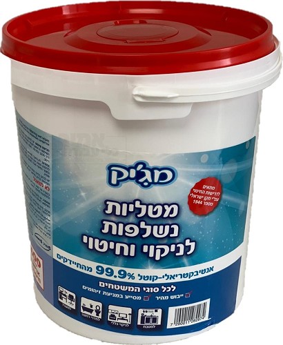מטליות נשלפות לניקיון וחיטוי אנטיבקטריאלי. קוטל כ-99.9% מהחיידקים . מארז ענק של 400 יח’. מאושר ועומד בדרישות עפ"י התקן הישראלי מספר 1944. מתאים לניקוי המשרד, חדרי רחצה, למטבח ולניקוי כללי של מוצרים וכו’.