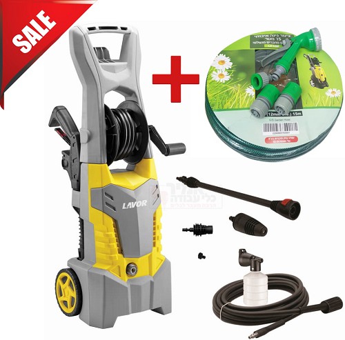 מכונת שטיפה בלחץ 145 בר 1900W כולל סט אביזרים וצינור 15 מ' מתנה תוצרת LAVOR