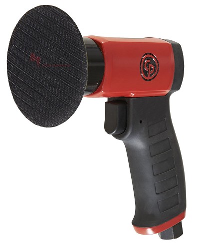 מלטשת אקדח פנאומטית “3 קומפקטית קלת משקל מעולה בשימוש לתיקוני שטחים קטנים לנגרים לפחחים ארגונומית אחיזת אקדח מעוצבת גומי ווסת כח מתכוונן שימוש בנייר ליטוש נצמד בסקוטש בקוטר 50 75 מ”מ יצרן Chicago Pneumatics