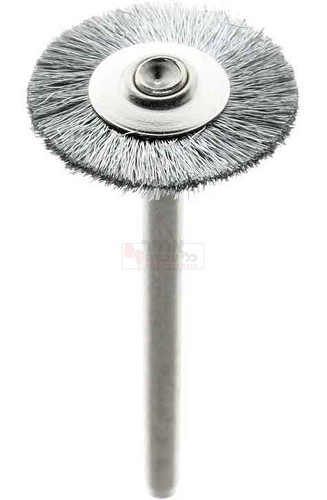 אביזר מברשת פלדה בצורת דיסקה 19 מ"מ מבית DREMEL. מגיע כ-2 יחידות באריזה. מברשת הברקה וניקוי מתכות וברזל, מעולה להסרת חלודה לכלוך וקורוזיה בצורה קלה ויעילה ממתכות כגון אלומיניום, נחושת, כלי כסף, ברזל יצוק, צינורות מתכת ועוד.