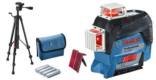 פלס לייזר BOSCH GLL 3-80C + חצובה BT 150 תוצרת BOSCH