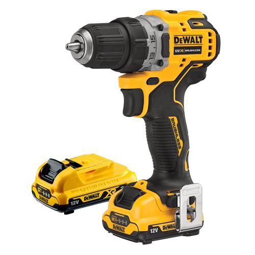 מברגה/מקדחה מקצועית 12V של DeWalt, כוללת 2 סוללות ליתיום 2Ah ומטען מסדרת XR, מנוע BRUSHLESS חזק ועוצמתי, גיר בעל 2 מהירויות 0-425/1500 סל"ד, פוטר אוטומטי 1-10 מ"מ, מתאים לעבודה ביתית ומקצועית