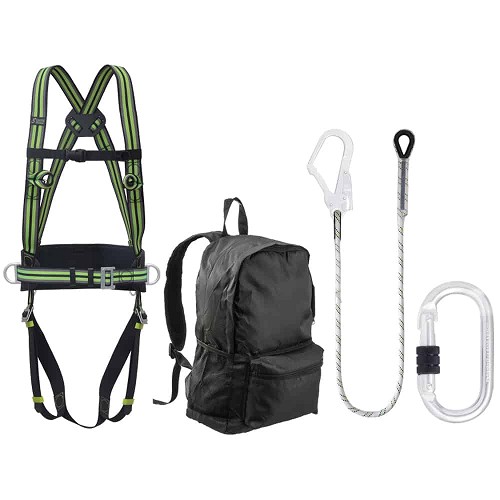 קיט בטיחותי, איכותי ובעל תקן לעבודה בגובה. סט מקצועי לעבודה על סלי הרמה / גגות שטוחים. סט קומפלט המגיע עם תיק נשיאה גב לשמירת הציוד. סט זה מתאים לסביבות עבודה שונות ומגוונות.