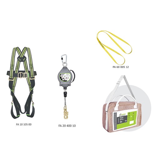 קיט תקני! מקצועי ואיכותי לעבודה בגובה. סט זה מתאים לעבודות במבנה קונסטרוקציה ו/או גג שביר. הסט כולל בתוכו בולם נפילה לשמירה מרבית במהלך העבודה. מגיע בתוך תיק נשיאה בעל רצועת כתף וידיות.