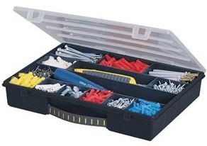 אורגנייזר קטן במזוודה דקה כולל סוגרי פלסטיק מובנים במכסה. עשוי פלסטיק איכותי שקוף ונגיש לצפיה, כולל חלוקת תאים קבועים שאינם ניתנים לשינוי גודל. מיועד לאנשי מקצוע טכנאים או סתם חובבים ביתיים. מצוין לסדר ואירגון של חלקים קטנים.