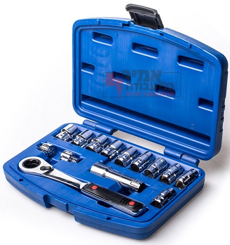 סט בוקסות חור עובר, חלולות, במידות 10-19 מ"מ, מורכב מ 14 חלקים במזוודת פלסטיק איכותית ועמידה עם קליפס נעילה.