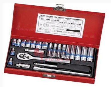 סט בוקסות אינצ’ מקצועי, עמוקות וקצרות, דרייב "1/4, בקופסת מתכת ננעלת.