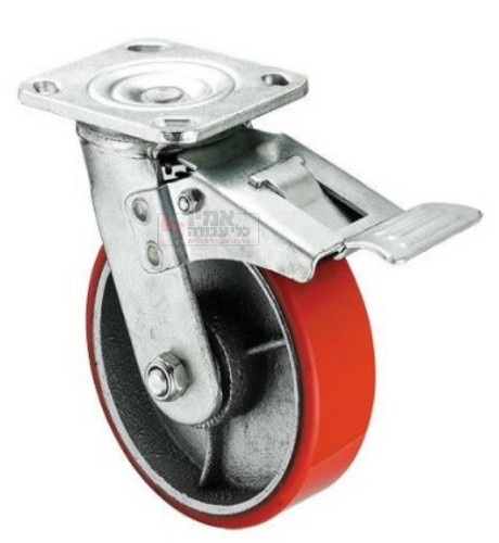 גלגל ניילון “6 אדום לעומס כבד 350 ק”ג גלגל מתכתי, פלטה מסתובבת ומעצור מבית נעה פרזול. גלגל כולל מעצור רגלי, ג’נט מתכת מאסיבי ופוליאוריטן אדום מאסיבי, להתקנה בתחתית עגלות ומשטחים.