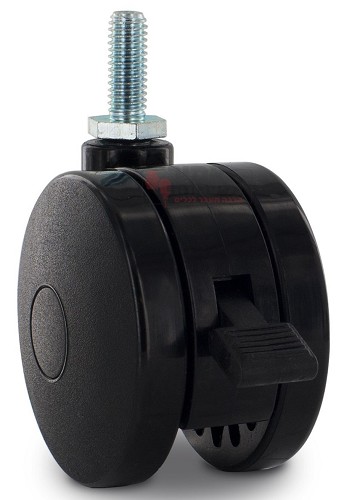 גלגל ניילון כפול לריהוט 50 ס"מ שחור לעומס 30 ק"ג בורג 3/8 ומעצור מבית נעה פרזול. לשימוש בתחום ריהוט הבית והמשרד. מותאם לריהוט משרדי, כונניות, ארונות קטנים, שידות. כולל הברגה חיצונית ומעצור, הגלגלים מותאמים למשטחי ריצוף או פרקט.