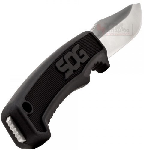 סכין תוצרת SOG, סכין אשר עוצב ותוכנן ע"י אנשי שטח ומטיילים, סכין נוח וקל משקל, להב העשוי פלדת אל חלד ובנוי בצורת clip point עם קצה ישר, מגיע עם נרתיק העשוי GRN (ניילון מחוזק) בעל תפס חגורה ונק חיבור נוספת, בנרתיק פתח קטן שבו תוכלו לחתוך חוטים מבלי להוציא אותו מהנרתיק, סכין ורסטילי בעל ידית העשויה גומי תרמו-פלסטי ולהב Full Tang מפלדת אל חלד