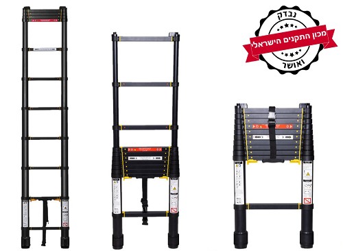 סולם אלומיניום שחור טלסקופי יחיד 2.90 מטר מאושר מכון תקנים הישראלי Climb