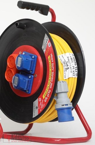 תוף כבל מאריך תעשייתי 50 מטר 4 שקעים 2 ישראלי 2 סיקון 3x16A ללא מפסק Amir tools