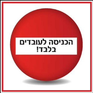 שלט PVC איכותי בעובי 2 מ"מ הכניסה לעובדים בלבד במידה 30 × 30 ס"מ. ניתן להזמין את כל סוגי השלטים בייצור אישי כולל מידות וסוגי חומרים.