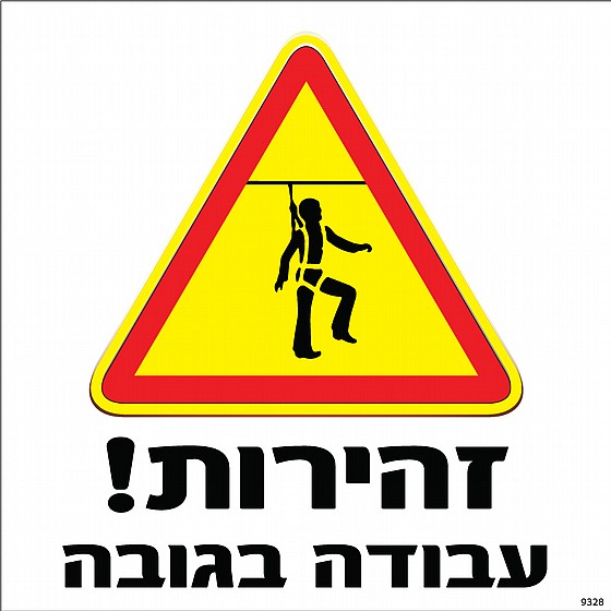 שלט PVC איכותי בעובי 2 מ"מ זהירות עבודה בגובה במידה 30 × 30 ס"מ. ניתן להזמין את כל סוגי השלטים בייצור אישי כולל מידות וסוגי חומרים.