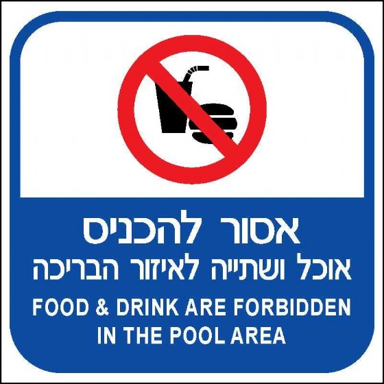 שלט אסור להכניס אוכל ושתיה לאזור בריכה 40 × 40 ס"מ Amir tools