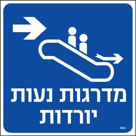 שלט PVC איכותי בעובי 2 מ"מ מדרגות נעות יורדות ימינה במידה 20 × 20 ס"מ. ניתן להזמין את כל סוגי השלטים בייצור אישי כולל מידות וסוגי חומרים.